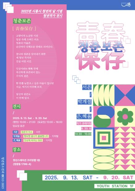 시 관계자는 “‘청춘보존’은 청년의 감정을 있는 그대로 담아내고, 예술이라는 매개체를 통해 지역사회와 청년이 함께 공감하는 소통의 장”이라며 “청년작가의 성장을 지원하는 시도가 곧 시흥시의 문화적 저력이 되고, 향후 청년친화도시로 도약하는 과정에서 도시와 청년 모두가 함께 성장하는 밑거름이 될 것”이라고 밝혔다.