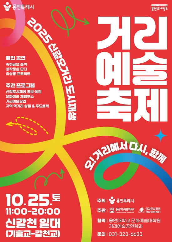 [세계로컬타임즈] 용인특례시는 25일 신갈오거리에 있는 신갈천 일대에서 ‘2025 신갈오거리 도시재생 거리예술축제’를 개최한다고 14일 밝혔다.