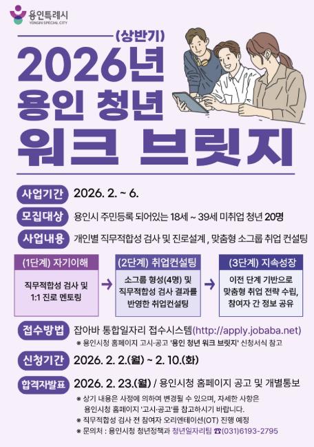 시 관계자는 “취업 준비 과정에서 방향을 잃기 쉬운 시기인 만큼, 청년들이 자신의 적성에 맞는 진로를 찾고 실질적인 취업 성과로 이어질 수 있도록 지원하겠다”며 “많은 청년들이 적극 참여해 주기를 바란다”고 했다.