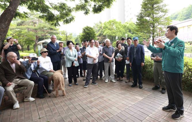 이 시장은 이날 관련 부서로부터 아파트 앞 진출입로 확장에 대한 브리핑을 듣고, 주민들과 대화했다.