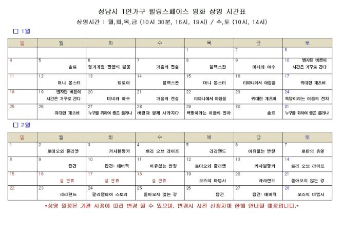 상영 당일 성남시 1인 가구 힐링스페이스를 방문해 입실해도 된다.