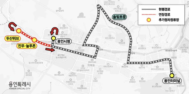 연장에 따라 현대연수원부터 마북동 행정복지센터, 연원마을, 교동마을을 거쳐 구성역까지 운행하던 502번 버스의 기점이 현대연수원에서 ‘단국대·치과병원’으로 변경된다.
