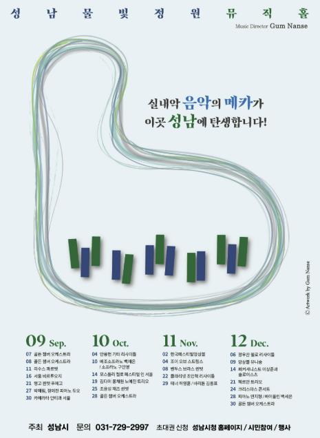 성남시는 오는 9월 7일과 8일 오후 7시 성남물빛정원 뮤직홀 개관(9.5) 기념 음악회를 연다.