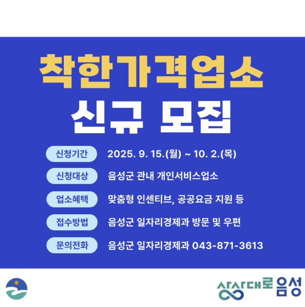 신청을 희망하는 업소는 음성군 홈페이지의 공고문을 확인하고 신청서와 사업자등록증, 지방세 완납 증명서, 신분증, 위생 등급 결과서(해당 시) 등을 지참해 군청 일자리경제과에 방문 또는 우편으로 접수하면 된다.