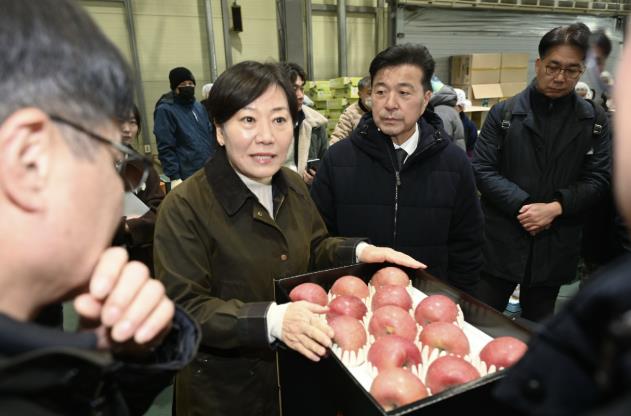 이번 방문은 설 명절을 맞아 사과 수요가 증가함에 따라 안정적인 저장 물량 확보와 원활한 공급 체계를 점검하기 위해 이뤄졌다.