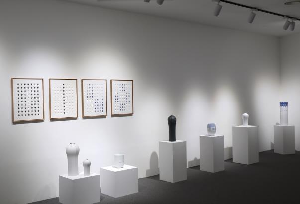 강민수 작가는 양구 백토와 장작가마라는 전통 재료와 기법을 활용해 18세기 백자대호, 이른바 ‘달항아리’를 현대적으로 재탄생시켰다. 부드러운 곡선과 자연스러운 균형미로 조선 백자의 소박하고도 고귀한 미를 그대로 구현했다. 김덕호 작가는 조선백자의 ‘면치기 기법’과 고려청자의 ‘연리문 기법’을 접목한 ‘흔적 시리즈’를 통해 시간의 흐름이 스며든 백자를 선보인다. 김호정 작가는 고대 빗살무늬 토기와 조선백자에서 형태를 차용하고 청화·철화 등의 색감을 장식적으로 더해 전통과 현대를 아우르는 조형미를 드러냈다.