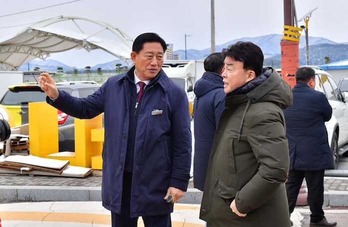 | ▲ 김한종 장성군수와 백종원 대표가 현장을 둘러보고 있다 (사진=장성군) |