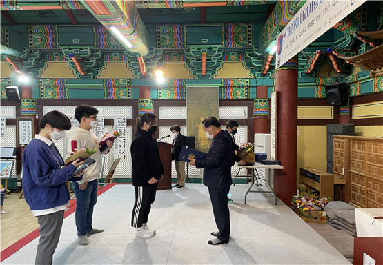 | ▲나라사랑 글짓기 및 사생 공모전 시상 장면.(사진=전라남도교육청) |