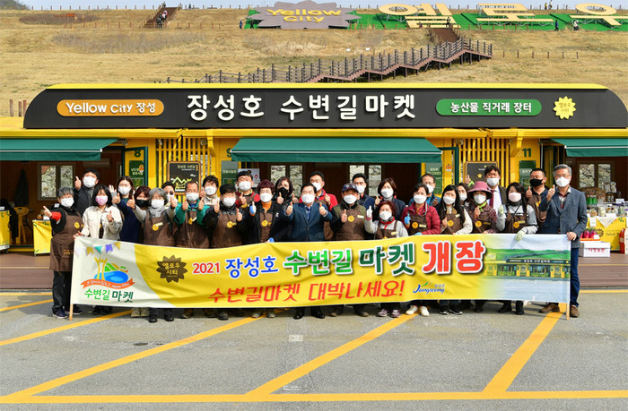 주말 평균 7000여 명의 발길이 이어지고 있는 장성호 수변길의 관광 수요를 이용해 지역 농산물 판로를 넓히면서 관광객들로 부터도 호응을 받고 있어 인근 지자체의 벤취마킹 대상이 되고 있는 것.