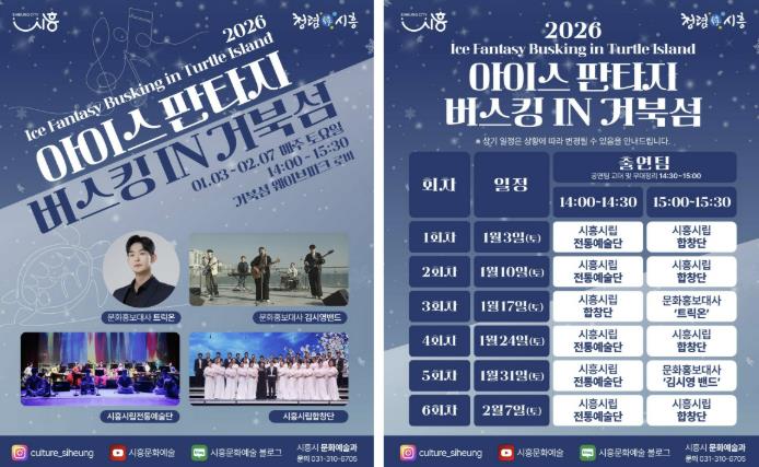 이번 공연은 1월 3일부터 2월 7일까지 매주 토요일, 총 6회에 걸쳐 진행된다. 스케이트장과 연계한 이번 프로그램은 겨울철 거북섬 방문객들에게 특별한 문화 향유 경험을 제공할 것으로 기대된다.