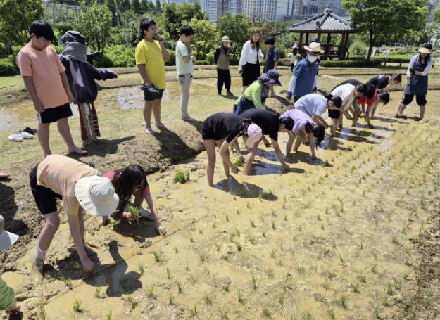 ‘쌀의 여행’을 주제로 한 도시농업공원 손 모내기 체험은 학생들이 직접 맨발로 논에 들어가 손으로 모를 심어보며 쌀의 생산 과정을 생생하게 익히는 프로그램이다. 이를 통해 교과서로만 접했던 손 모내기를 몸소 체험하며 우리 농산물의 소중함과 바른 먹거리에 대해 배우는 기회가 될 것으로 기대된다.