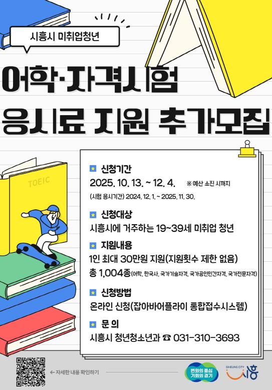 [세계로컬타임즈] 시흥시는 10월 13일부터 관내 취업 준비 청년들의 능력개발을 돕기 위한 어학ㆍ자격시험 응시료 지원 3차 모집을 실시한다.