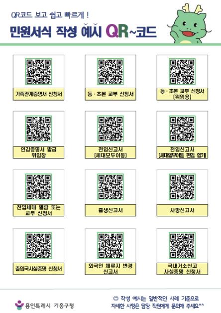 QR코드는 기흥구청 민원지적과와 기흥구 내 15개 동 행정복지센터 민원실에 게시됐다.