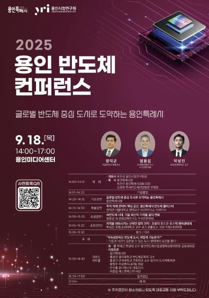 [세계로컬타임즈] 용인특례시는 재단법인 용인시정연구원과 함께 18일 오후 2시 용인미디어센터에서 ‘2025 용인 반도체 컨퍼런스’를 연다고 11일 밝혔다.