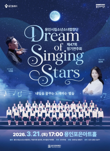 [세계로컬타임즈] 용인문화재단은 오는 3월 21일 용인포은아트홀에서 용인시립소년소녀합창단 제47회 정기연주회'Dream of Singing Stars'를 개최한다고 밝혔다.