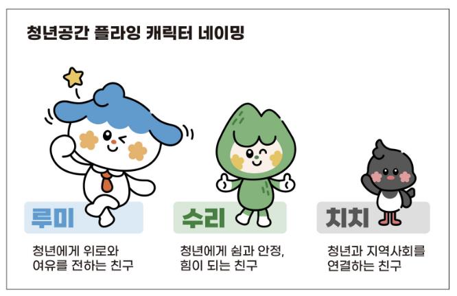 또 수리산에서 온 ‘수리’는 단단한 자연의 품처럼 청년에게 쉼과 든든한 힘이 되어주는 친구로 ‘치치’는 청플과 지역사회를 잇는 소통의 매개체로 희망과 반가운 소식을 전하는 상징으로 결정됐다.