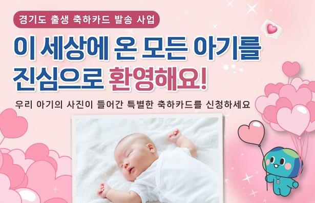 축하카드는 경기민원24 온라인 페이지를 통해 연중 신청할 수 있으며, 아기의 사진을 함께 제출하면 이를 바탕으로 아기의 이름과 사진이 담긴 맞춤형 디지털 카드를 제작해 휴대전화로 발송할 예정이다.