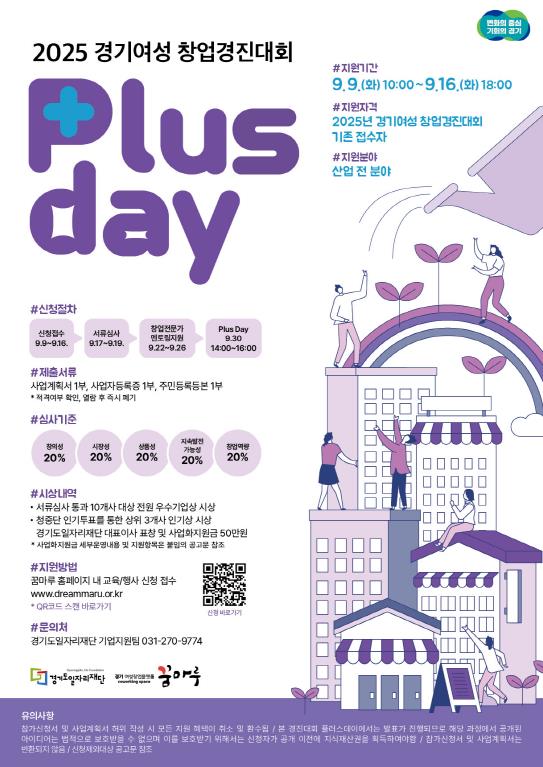 참가자격은 우선적으로 2025년 경기여성 창업경진대회에 접수신청을 한 기업으로 제한되며, 여성창업 플랫폼 꿈마루 누리집 ‘교육·행사 신청’ 메뉴에서 접수할 수 있다. 자세한 사항은 여성창업플랫폼 꿈마루 누리집 또는 경기도일자리재단 기업지원팀으로 문의하면 된다.
