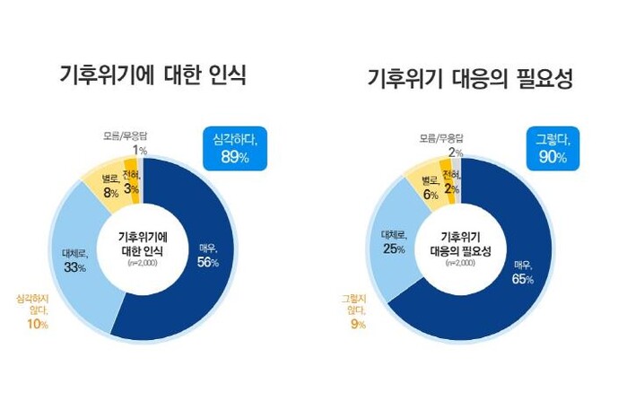 경기도가 지난 8월 7일부터 11일까지 만 18세 이상 도민 2,000명을 대상으로 실시한 여론조사에 따르면, 응답자 89%가 기후위기를 ‘심각하다’고 답했다. 56%는 ‘매우 심각하다’는 인식을 가진 것으로 확인됐다.