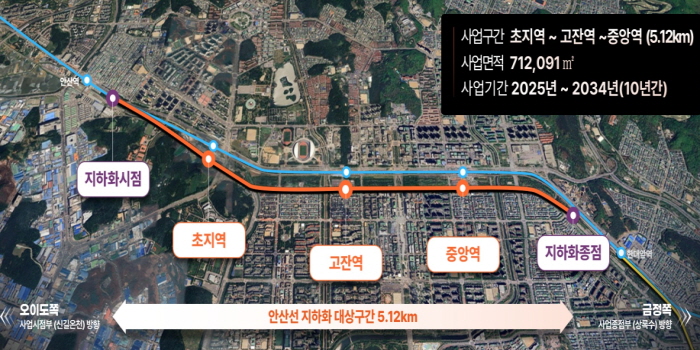 ‘안산선 지하화 통합개발사업’은 안산시 초지역에서 중앙역에 이르는 약 5.12㎞ 구간을 지하화하고 상부를 개발하는 사업이다. 지난 2월 19일 국토교통부의 선도사업으로 선정됐으며, 올해 12월 발표 예정인 ‘철도지하화 통합개발 종합계획’ 수립 전 선제적인 사업추진이 가능하다.