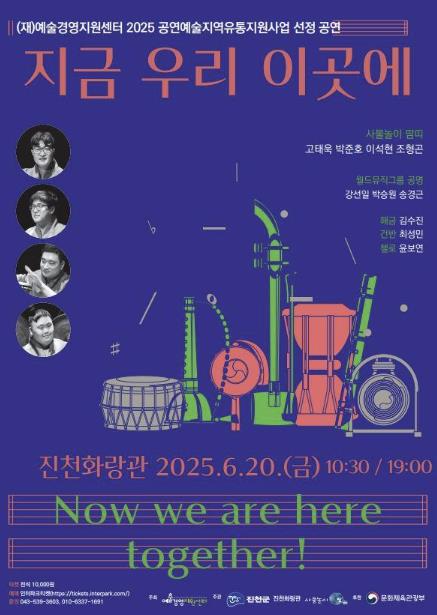 이번에 개최되는 공연은 사물놀이 땀띠의 ‘우리 지금 이곳에’로 자폐성 장애, 지적장애, 뇌병변 장애 등 장애를 가진 청년연주자 4명으로 구성된 국악 연주단과 음악감독 송경근이 동인으로 활동하고 있는 ‘월드뮤직그룹 공명’이 협연한다.