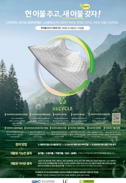 주이규 경기도사회적경제원장 직무대행은 “사회적경제원은 사회환경 문제해결 지원사업처럼 다양한 사회적 문제를 민관이 협력하여 창의적이고 혁신적인 방식으로 해결하는 경기도의 ‘사회혁신플랫폼’ 사업을 진행 중”이라며 “헌 이불 수거에 도민의 작은 참여가 지역의 순환경제를 움직이는 원동력이 될 것”이라고 말했다.