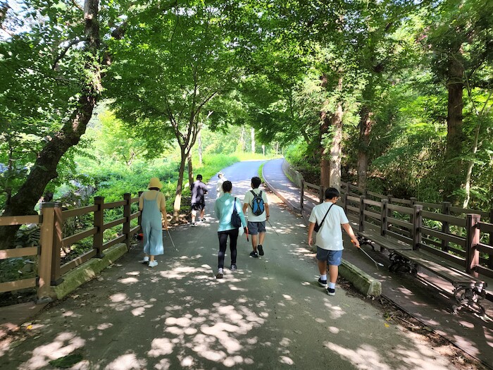 ▲관내 특수교육대상학생과 가족들을 대상으로 만연산 오감길을 걸으며 쓰레기를 줍는 ‘줍깅’활동으로 더운 여름을 오히려 즐기는 시간으로 보냈다.(사진=화순교육지원청)