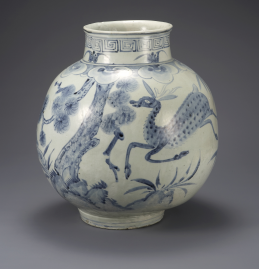 | ▲ 경기도자박물관 상설전시회에 전시된 조선 19세기 청화백자장생문호.<사진제공=경기도청> |