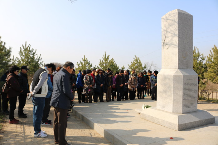 | ▲ 세계일보 조사위원 및 통일지도자 아카데미 수강생들로 구성된 러시아 연해주 독립운동 유적지 탐방단이 10월 21일 우수리스크에 있는 헤이그밀사 이상설 선생 유허비 앞에서 참배를 하고 있다. |