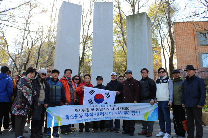 [세계일보 이우춘 조사팀장] 세계일보 조사국에서는 10월 18일부터 22일까지 극동러시아에 위치한 하바롭스크와 블라디보스토크(Vladivostok) 및 우수리스크(Ussuriysk) 지역의 독립운동 유적지을 탐방했다. 조국통일의 정론지 세계일보가 남북통일에 이바지하고 민족정기를 발양하기 위해 실시하고 있는 제4기 통일지도자 아카데미의 원우와 조사위원 67명이 함께했다. 우리민족 고유의 유물·유적지 답사 그리고 목숨을 건 항일 독립투사들의 발자취에서 국가 잃은 민족이 겪어야 했던 참상을 실감한 여행이었다.
