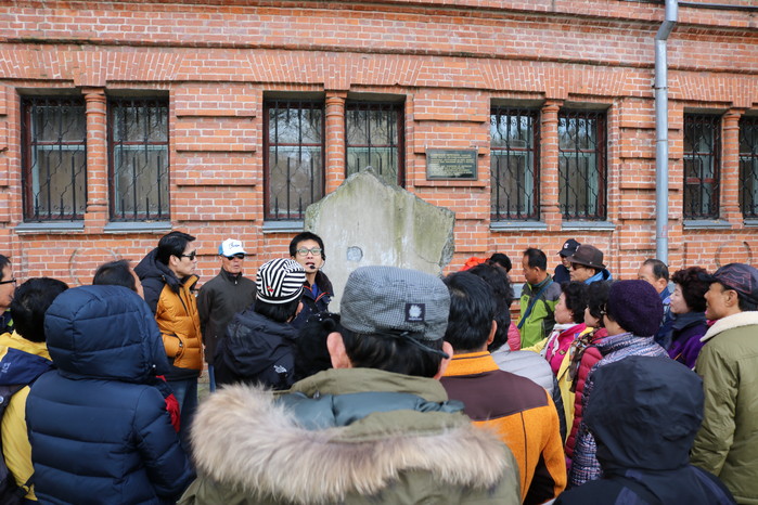 이어 독립운동의 대부이자 후견인으로 안중근 의사의 하얼빈 거사를 도왔던 최재형 선생(1858~1920)의 블라디보스토크 주거지에 들렀다. 연해주 한인사회의 지도자로 독립운동에 온기를 불어 넣는 페치카(난로)라고 불렸던 최재형 선생이 우수리스크로 이주하기 이전인 1919년까지 거주했던 곳이다.