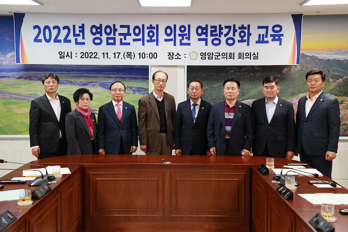 [세계로컬타임즈 강석운 기자] 영암군의회에서는 지난 17일 제2차 정례회를 앞두고 의정활동 능력 배양을 위해 전체 의원 및 직원을 대상으로‘영암군의회 의원 역량강화 교육’을 실시했다고 밝혔다.
