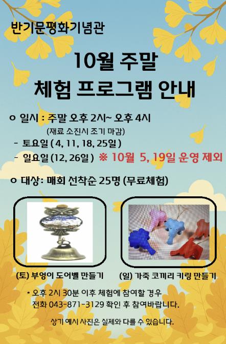 해당 프로그램은 10월 4일부터 26일까지 매주 토·일요일(오후 2시부터 4시까지, 재료 소진 시 조기 마감)에 진행된다. 단, 10월 5일과 19일은 운영하지 않는다.