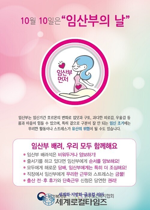 올해로 17회를 맞은 임산부의 날은 풍요와 수확의 달인 10월과 임신기간 10개월을 의미하는 날로, 임산부를 배려하고 보호하는 사회적 분위기를 조성하기 위해 지난 2005년 제정됐다.
