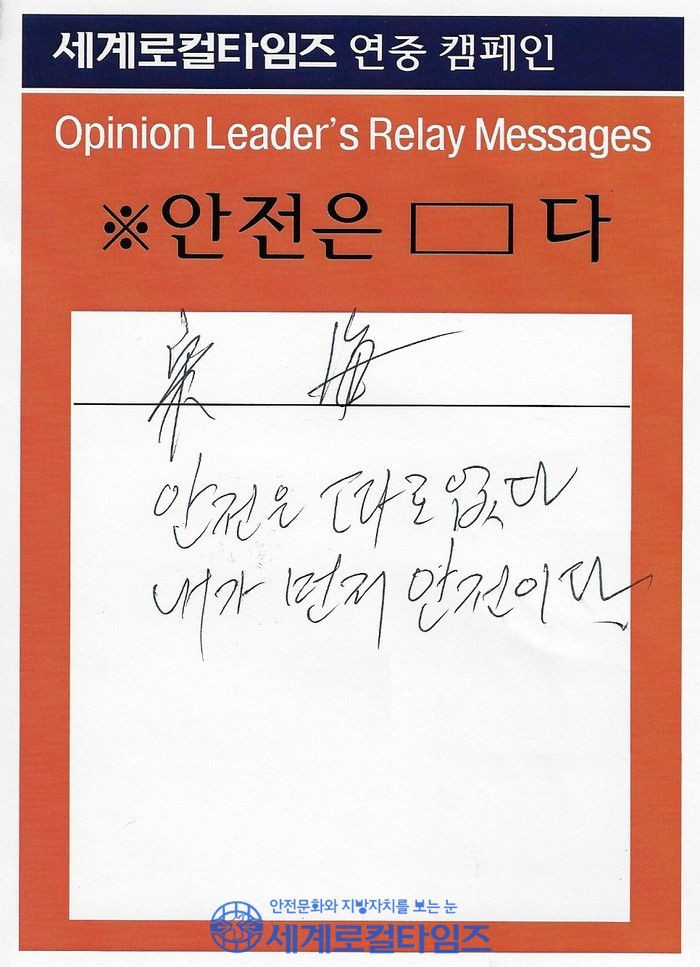 [세계로컬타임즈 이배연 기자] 국가 정책 및 관리 부재와 안전 불감증 등으로 인해 위태로운 생활이 이어지고 있는 현실에서 국민들이 마음 편히 살아갈 수 있도록 ‘안전 문화 캠페인’을 진행하고 있다.