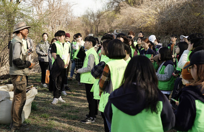 | ▲ 재한중국유학생과 한국대학생 62명이 활동 전 식목하는 법에 대한 설명을 듣고 있다.(사진=서울시 제공) |