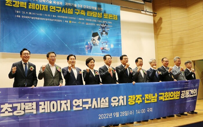 [세계로컬타임즈 강석운 기자] 초격차 전략기술 육성을 통한 과학기술 5대 강국 도약을 목표로 추진하는 1조원 규모 초대형 국책사업인 ‘초강력 레이저 연구시설’을 광주·전남 공동(나주 빛가람) 혁신도시로 유치하기 위한 토론회가 28일 국회에서 개최됐다.