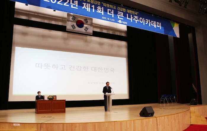 첫 강연자로 초청된 김황식 전 총리는 “특별한 분야의 전문적 지식보다는 누구든지 쉽게 이해하고 공감할 수 있는 강연을 준비했다”라며 “대한민국과 우리 사회가 나아가야 할 방향에 대해 함께 고민하는 자리가 되길 바란다”라고 강연을 소개했다.