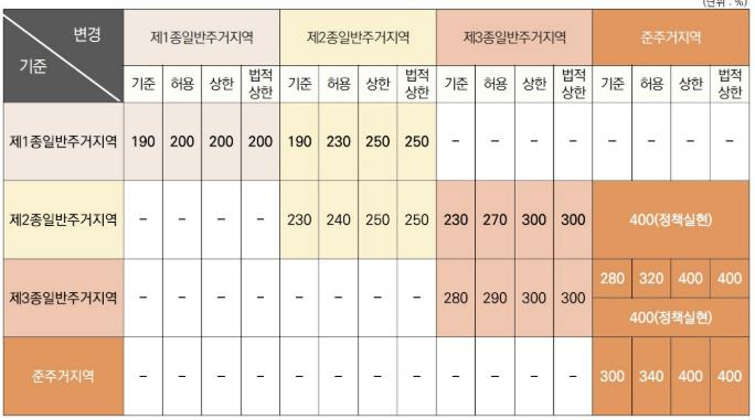가장 큰 변화는 종 상향 제도 도입과 용적률 체계 개편이다. 당초 기본계획에는 없던 종 상향을 허용해 일반 정비사업에는 1단계 종 상향이 적용되고, 공모 등을 통해 선정된 역세권 정비사업은 최대 준주거지역(용적률 400%)까지 상향될 수 있도록 했다.