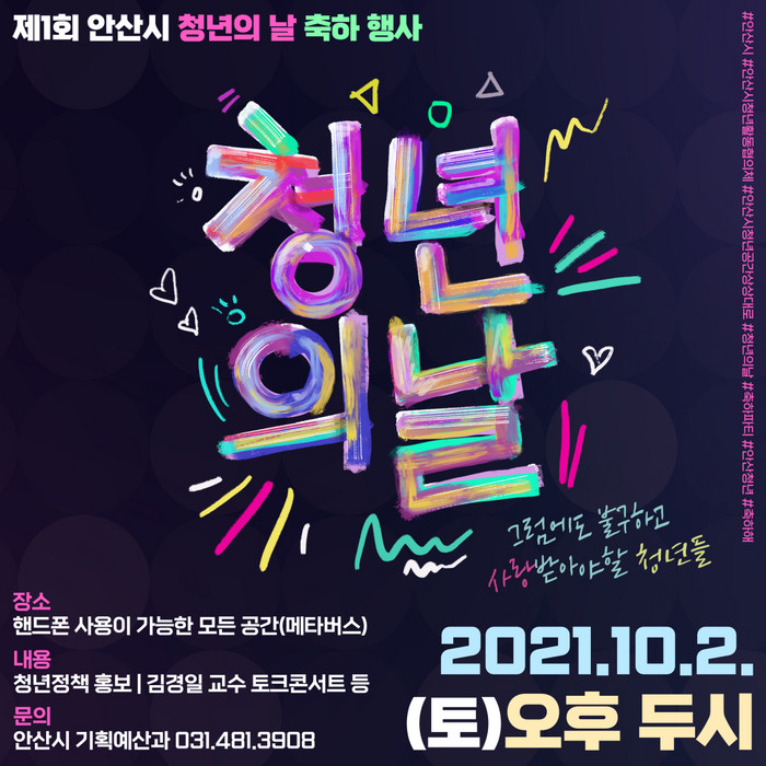 13일 안산시에 따르면 이번 행사는 코로나19로 유례없는 어려움을 격고 있는 청년들을 위로하고 응원하기 위해 ‘그럼에도 불구하고 사랑받아야 할 청년들’이라는 행사 부제가 붙여져 안산청년들이 직접 기획하고 참여하는 축제의 장으로 진행될 예정이다.