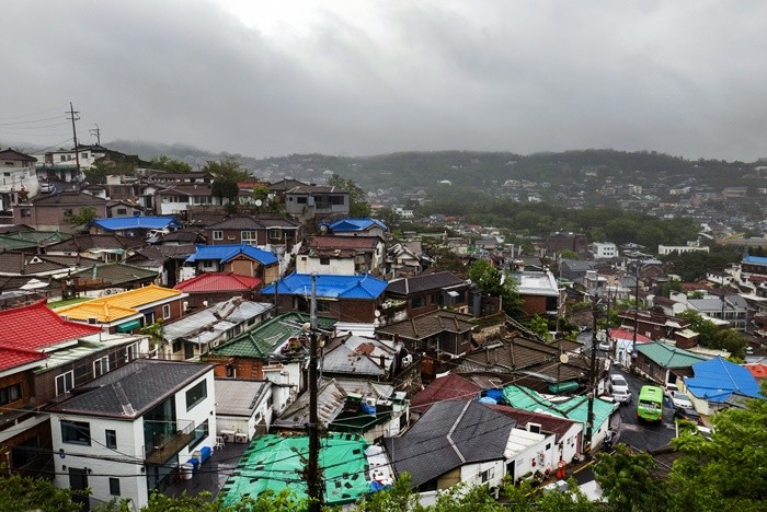 특히 비가 오는 날 더 진가를 발휘하는 알록달록한 지붕의 색감이 발걸음을 멈추게 한다.