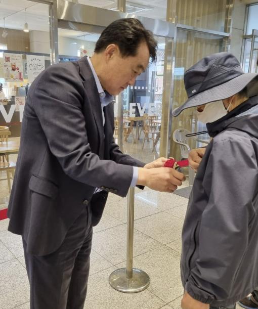 5월 8일에는 군포시 하은호 시장, 군포시늘푸른노인복지관 길재경 관장이 카네이션을 직접 달아드리며 ‘특별한 어버이날~ 더 행복하세요! 감사하고 사랑합니다~’ 라는 의미를 전했다.