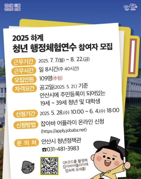 세계로컬타임즈 - 안산시, 하계 청년 행정체험 연수생 109명 모집… 실무 경험 부여