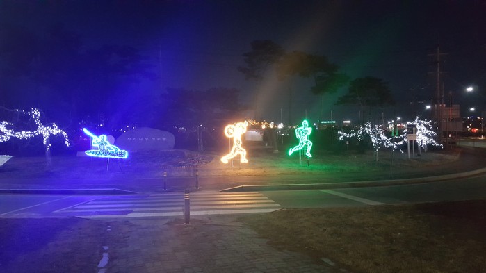 | ▲ 충주시가 건국대사거리 사과나무길에 스포츠를 형상화 해 설치한 LED 조형물.<사진제공=충주시청> |