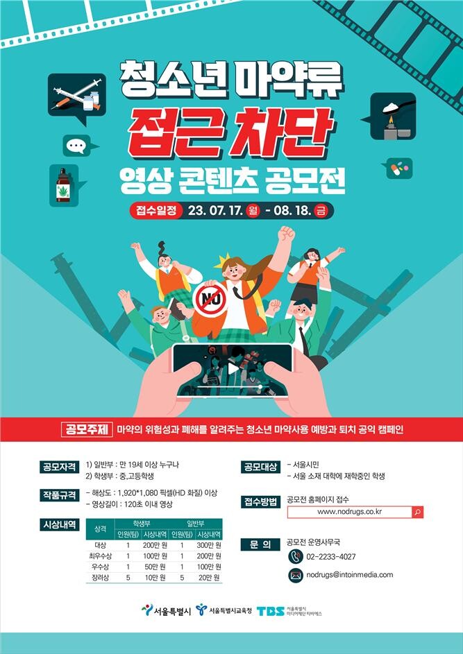 [세계로컬타임즈 이효진 기자] 서울시는 마약류 위험성을 알리면서 청소년의 마약예방 공감대를 높일 수 있는 영상물을 활용하기 위해 학생, 시민이 참여하는 ‘청소년 마약류 접근차단 영상콘텐츠 공모전’을 개최한다.