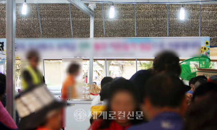 | ▲ 지난해 9월 23일 전북 김제시 한 간부 공무원이 모 여자 공무원에게 부적절한 행동을 한 것으로 알려진 지역축제 행사장 해당 음식부스에서 시민들이 식사를 하고 있다. |