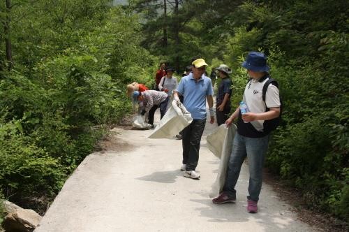 갈론구곡은 지역의 명소인만큼 봉사활동 내내 웃음을 잃지 않고 적극적으로 참여해 구슬땀을 흘렸다.