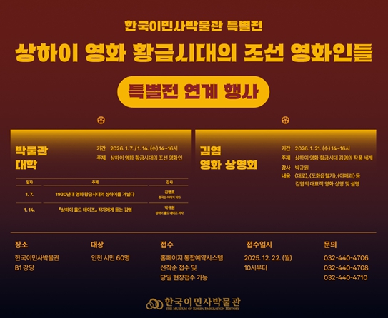 이번 특강은 2026년 1월 7일과 14일, 두 차례에 걸쳐 한국이민사박물관 지하 1층 강당에서 시민 60명을 대상으로 진행되며, 수강료는 무료다.