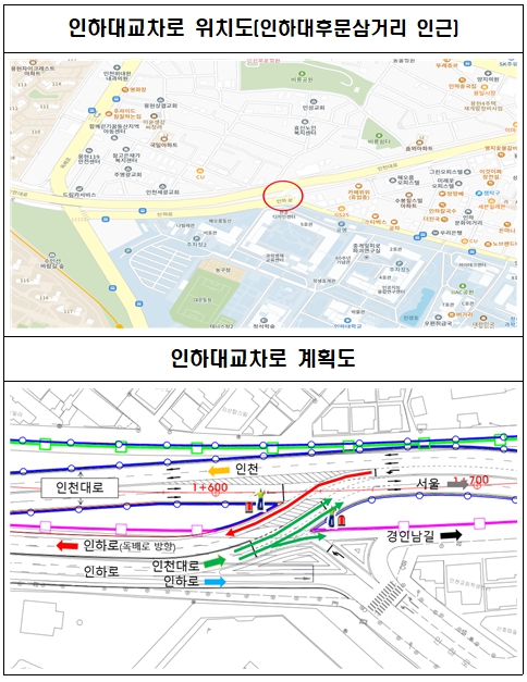이번에 개통되는 인하대 교차로는 시민의 교통편의를 위해 공사 중 교통처리계획에 따라 우선 개방하는 시설로, 향후 인천대로 일반화 사업 추진 단계에 따라 재정비될 예정이다.