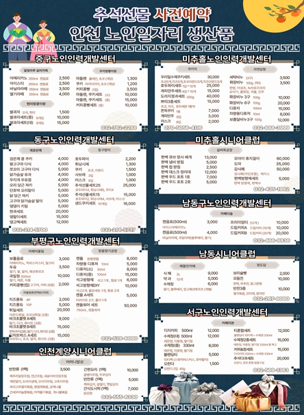 이번 행사에는 9개 노인일자리 지원기관이 참여해 ▲쌀과자·호두정과 선물 세트 ▲공예품 ▲생활소품 ▲쿠키 ▲수제청 ▲디퓨저 ▲반찬 ▲반려동물용품 등 100여 종의 다양한 제품을 선보인다.